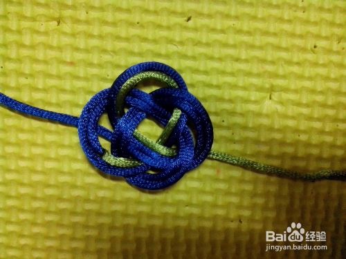 把双钱结向上轻轻推拉,形成一个四边菠萝结,成结之后也要整理一下,使他变的好看规整。