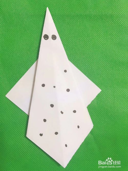 我们将纸翻过来,用笔画上眼睛个花纹,可爱的蛇项龙就完成咯。