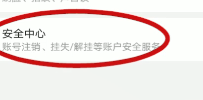 点击账号与安全的按键;选择罪哨净下捕荡方的安全中心;