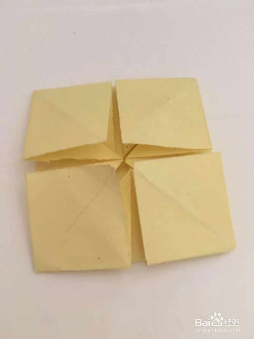 第四步 折叠完小双正方形之后 再把小双正肥蚊方形两边向里对准中线折叠 其它三个都一样折叠