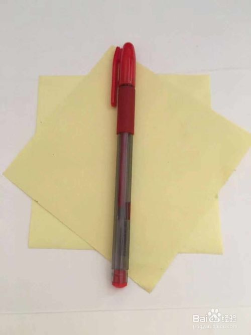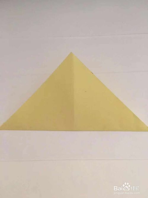 第一步 先把一张14厘米X14厘米的正方形黄色彩纸 折出两条对角线和对边线 然后把四个角都向中心折叠