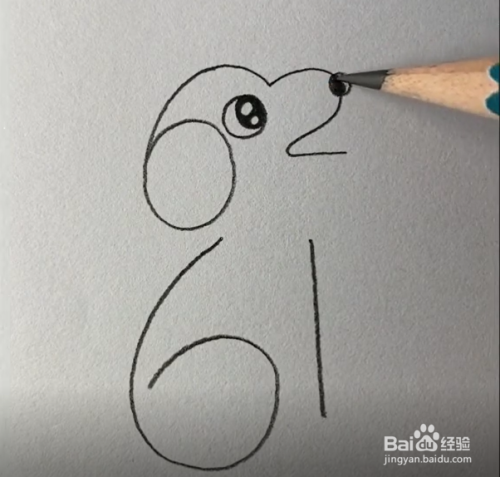 在2的弧形上画上狗狗的鼻子。