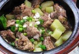锅内放入焯好的排骨、莴笋、葱段、姜片、料酒和适量水大火烧开转中火炖30分钟。