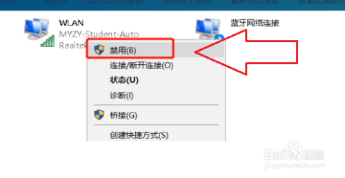 然后右击无线网络图标选择“禁用”。黄色感叹号消失没有。