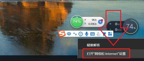首先右击网络图标并点击“打开网络和Inernet设置”。