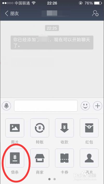 点击发消息后,在弹出打开来的聊天窗口中点击底部的+图标,然后在点击+图标后下方展现的选项即可看到“借条”功能。