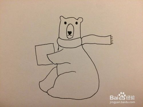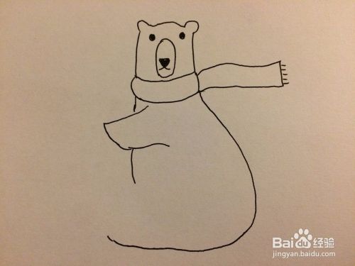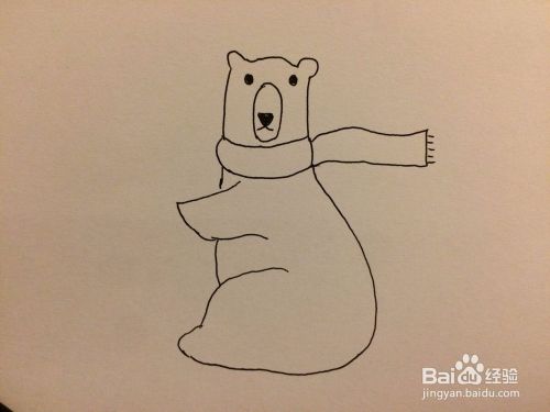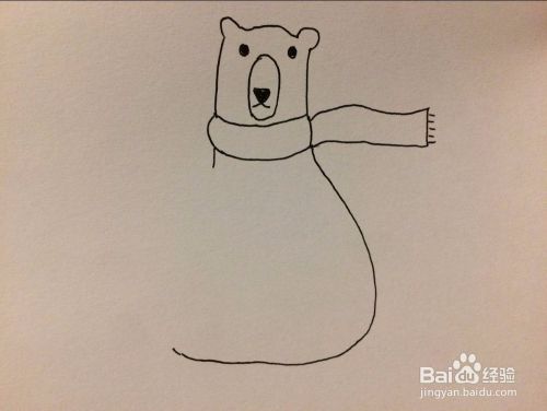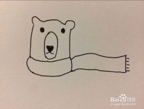 然后画出北极熊的脸部,在脖子上画出一条长长的围巾。