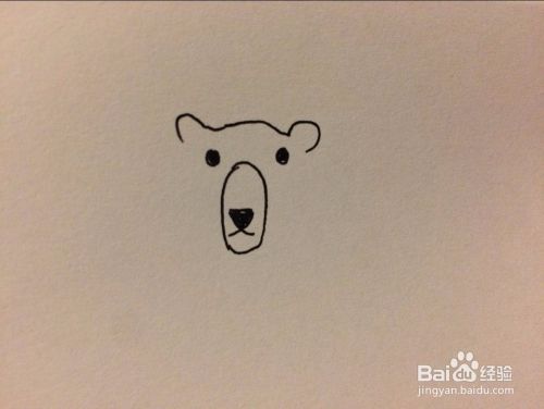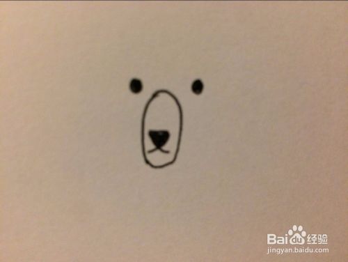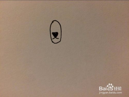 我们准备好画北极熊笔和纸,先画出一个椭圆。然后椭圆里画出鼻子和嘴巴。