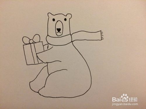 接下来画一个北极熊拿个方形的礼盒,盒子上画一个蝴蝶结。