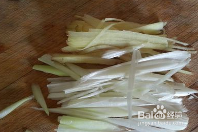 锅烧热,生姜丝下锅,炒一下,把鸭肉放下去炒