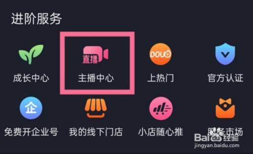 在进阶服务中点击【主播中心】;