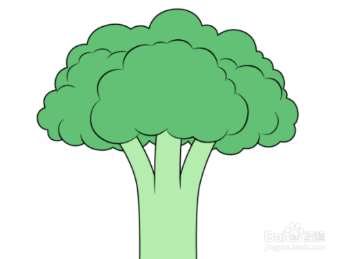 将西兰花上色。要给西兰花上色,您只需将花冠设为深绿色,茎杆设为浅绿色即可。