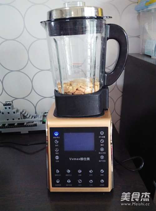 将去皮花生仁放入破壁料理机中,加入绵白糖。