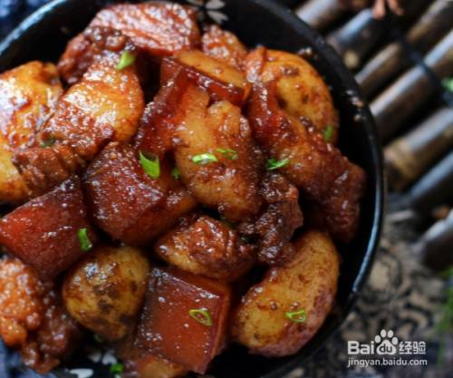 出锅后撒上些葱花,小土豆炖红烧肉就做好了!