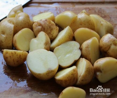 小土豆洗净,个头比较大的对半切开,皮可以不去。