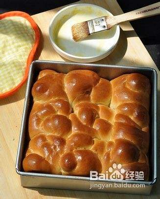 180度烤箱下层约烤30分钟,出炉后立刻刷一层融化的黄油即可