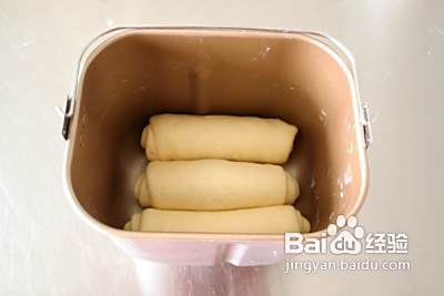 发酵时要掌握好温度。第一次发酵的温度,一般正常的室温即可,如果室温较低,建议放到温暖处,面团第一次的发酵所需温度为28℃—29℃。在面团整形完的第二发酵,选择面包机的酸奶程序就可以,因为面包机酸奶程序的温度,与面团第二次发酵所需的温度差不多,温度为38℃左右。面团的发酵时间,不是固定的,主要视的发酵情况而定,发酵过程中可以适当的在面包桶内洒一些水,增加湿度。