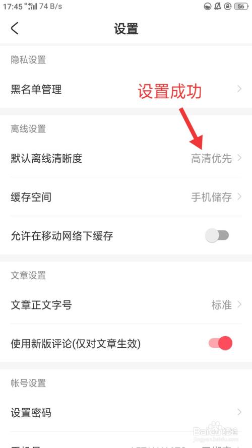 最后返回到设置界面,可以看到默认离线清晰度后面显示为高清优先,这样我们就成功设置了默认离线清晰度了。