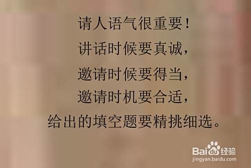 讲话时候要真诚,邀请时候要得当,邀请时机要合适,给出的填空题要精挑细选。
