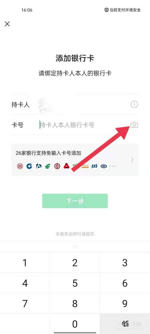 点击银行卡任务栏,新页面选择添加银行卡,输入卡号即可。