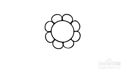 首先用圆形画出花盘,再用椭圆形画出层层叠叠的花瓣儿