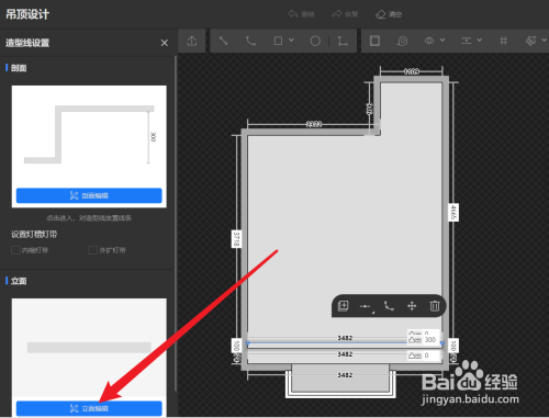 在酷家乐中打开设计方案,选择顶面,然后点击吊顶设计。