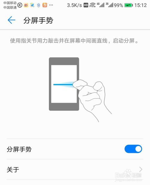 指关节用力敲击并在屏幕中间画直线即可启动分屏;