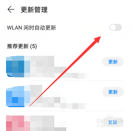 进入更新管理页面选择开启wlan闲时自动更新。