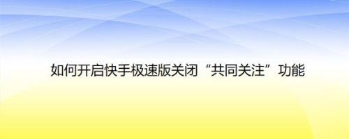 快手极速版是一款短视频平台快手的极速流畅版本App,为用户提供了更简洁的界面,更人性化的操作,更迅速的运行速度,那么如何开启快手极速版关闭“共同关注”功能以满足不同用户的需求呢?