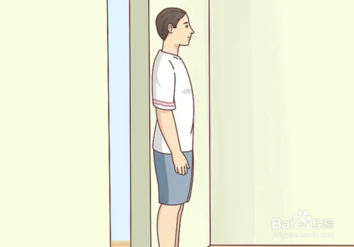 站直,背部和脚后跟平靠墙面。双脚并站在地上,不要踮脚。