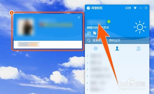 先打开阿里旺旺,将鼠标移到旺旺左上角的昵称上面,这时左边就会弹出一个有旺旺头像的信息框出来。