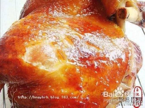 .放入预热160度的烤箱,烤制1小时,每三十分钟取出刷一次蜂蜜水,每次都要仔细,都要待表皮晾干后再烤制,最后一次刷完蜂蜜水,烤箱调至220度,再烤制15分钟左右就好了。具体的时间还要看你家烤箱的具体情况,把握不好可以随时观察随时调整。