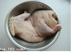 将买来的鸭子洗净,控一控表面墨压多余的水分。