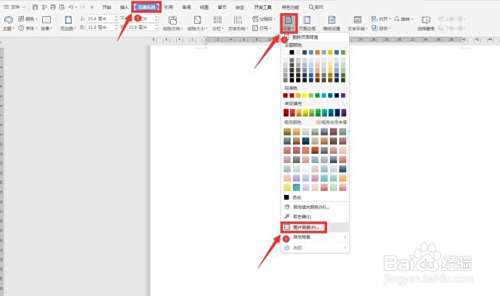 点击工具栏上的【页面布局】选项,在下拉菜单中选择【背景】,二级菜单中点击任意一个颜色。