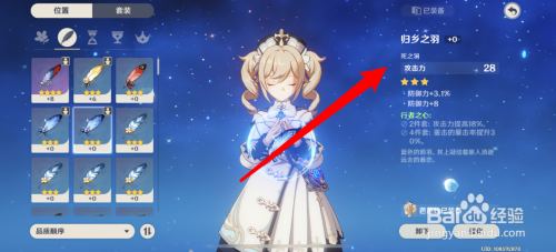 5、随后再给芭芭拉装备攻击力特别强的圣遗物