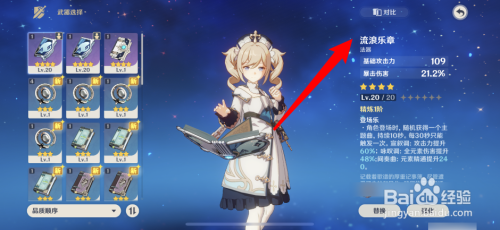 3、随后给芭芭拉装备伤害能力特别强的法器,后期也可以强化武器变得更强