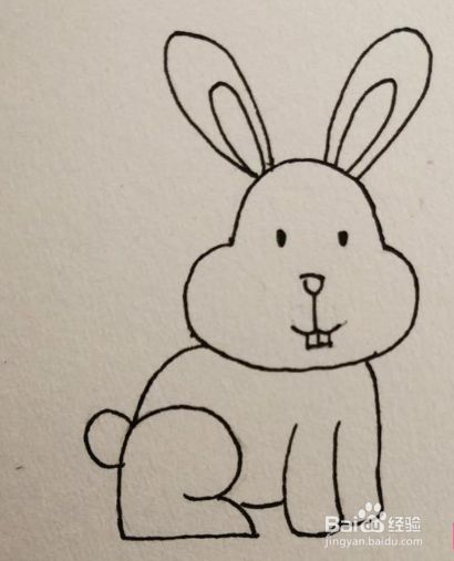 最后就是画出兔子的五官啦,标准的兔子牙一定要画出来哦!