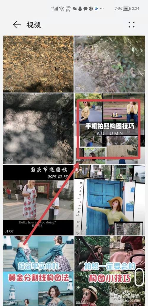 进入图库后,点击下方“相册”进入后,找到视频界面。