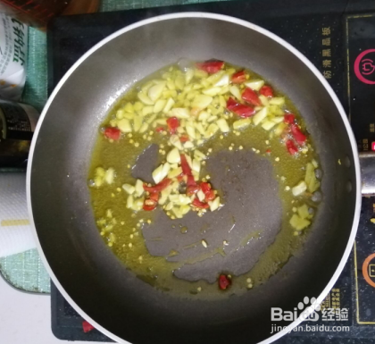 锅中烧干,放入菜籽油,再放入生姜、大蒜、干辣椒爆香,盛入小碗中,