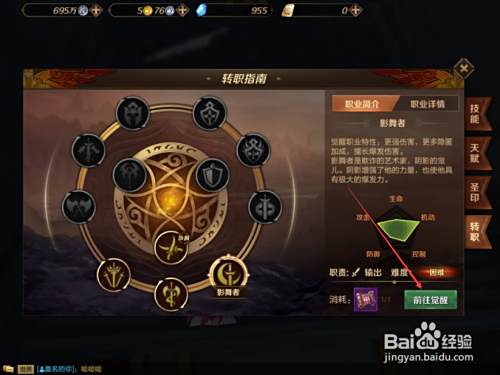 转职后的三种职业对于玩家来说操作难易程度不同,选择好转职后的职业后,接着点击右下角的【前往觉醒】按键。