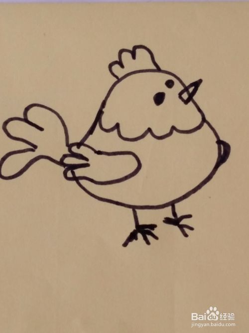 然后我们再往上在头上画上鸡冠的形状,并画上它胖胖的身体