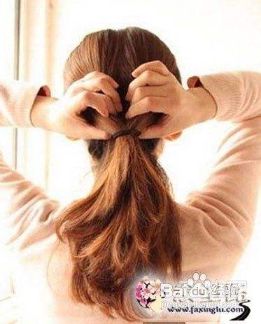 三:在刚刚扎好的马尾上方,用手向两侧拨开,并挖取一个小洞。