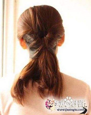 四:将马尾辫翻转并穿过上部挖好的小洞,记得发尾要全部拿出来哦。