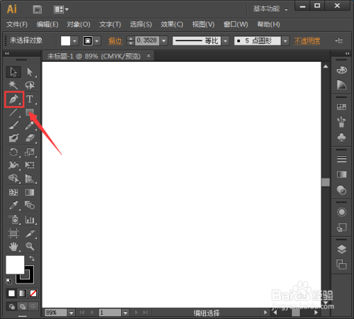 打开AI之后在工具箱内找到钢笔工具,如图所示: