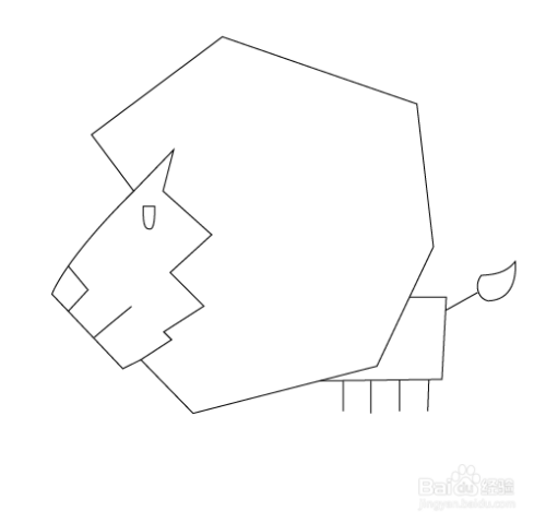 最后在身体后面再画出狮子的尾巴,如图所示: