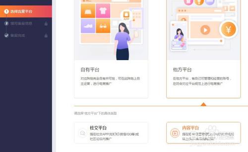 点击左侧的媒体备案,选择他方平台,选择内容平台。