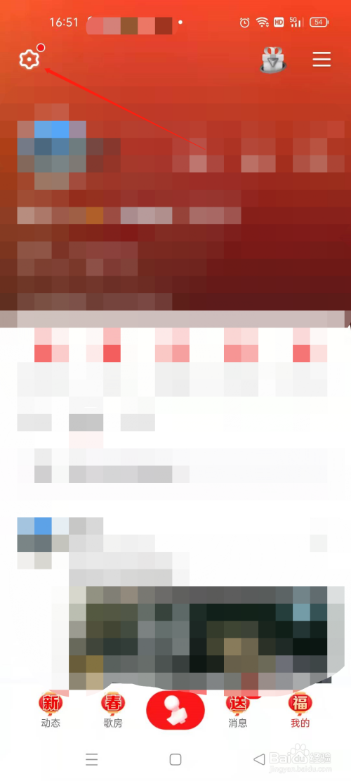 全民K歌【我的】界面,在左上角设置图标点击进入。