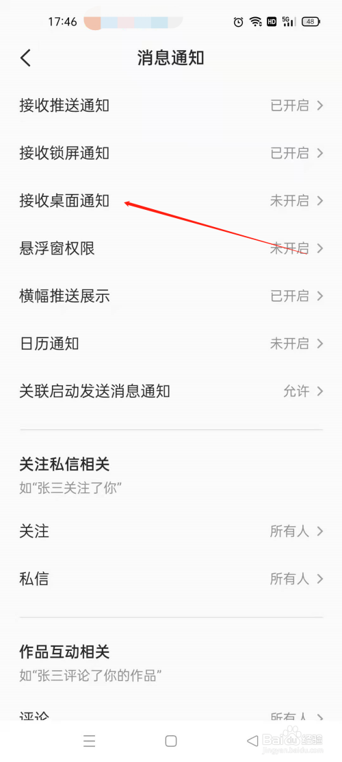 点击接收桌面通知进入。