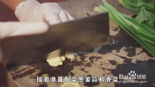 接着准备配菜葱姜蒜和香菜,水开之后放入白糖和盐