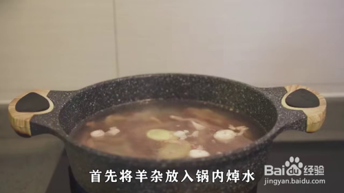 首先将羊杂放入锅内焯水,焯水之后另起一锅水,将羊杂放进去